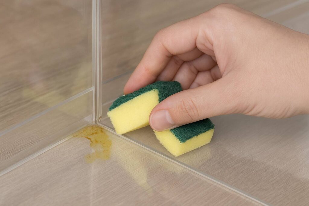 2. Vinegar putih 1:3: Semprotkan ke kerak urine, diamkan 10 menit. Kristal kalsium akan larut tanpa gosok keras.
