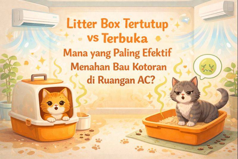 Jawabannya: Litter box terbuka dengan frekuensi bersih tinggi lebih efektif menahan bau di ruangan AC dalam jangka panjang. Bau tidak terakumulasi, sirkulasi udara maksimal, dan kucing lebih nyaman.