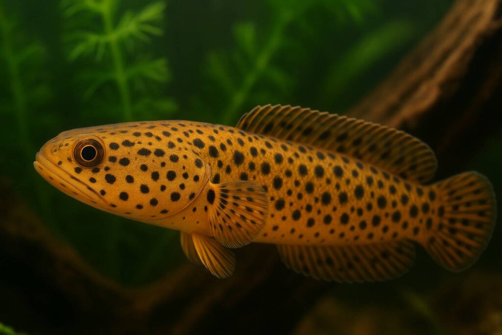 Channa Maru berasal dari Asia Selatan, bisa tumbuh hingga 30-40 cm di akuarium. Masa hidupnya mencapai 8-10 tahun kalau dirawat benar. Coraknya yang oranye keemasan dengan pola bintik hitam memang bikin jatuh hati, tapi ingat: ini ikan predator sejati. Insting berburunya kuat, dan sifatnya sangat agresif, bahkan terhadap sesama jenis.