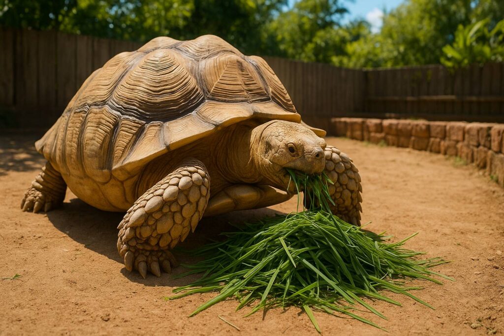 Makanan Sulcata 80% adalah rumput dan hay, sisanya sayuran hijau. Dilarang keras protein tinggi atau buah manis. Tapi jangan bayangin cuma kasih rumput halaman ya, soalnya rumput Indonesia belum tentu cocok.