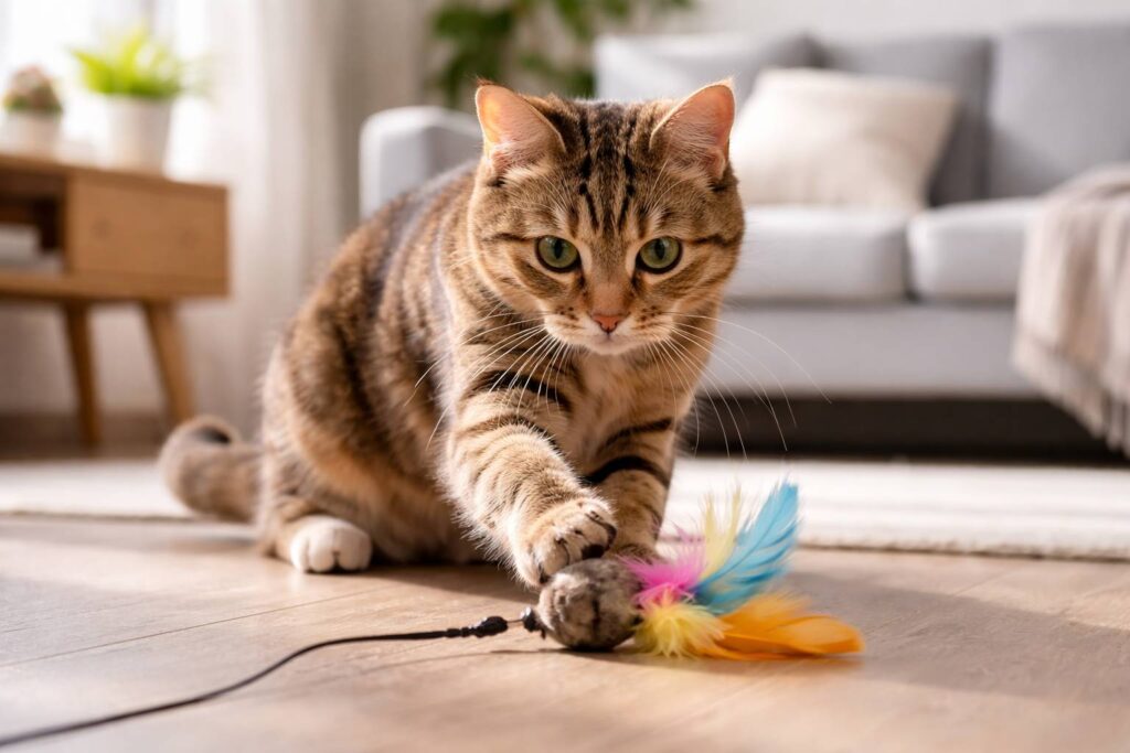 - Aktivitas Fisik: Main 15 menit sebelum makan bisa bantu stimulasi metabolisme. Mainan interaktif, tower makan, atau sekadar laser pointer.